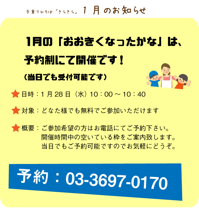【子育て広場】1月28日は「おおきくなったかな」開催です